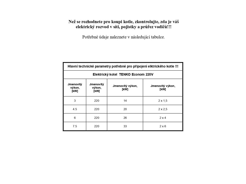| Kategorie: | Elektrický kotol - TENKO ECONOM 220V 3kW 4,5kW 6kW 7,5kW |